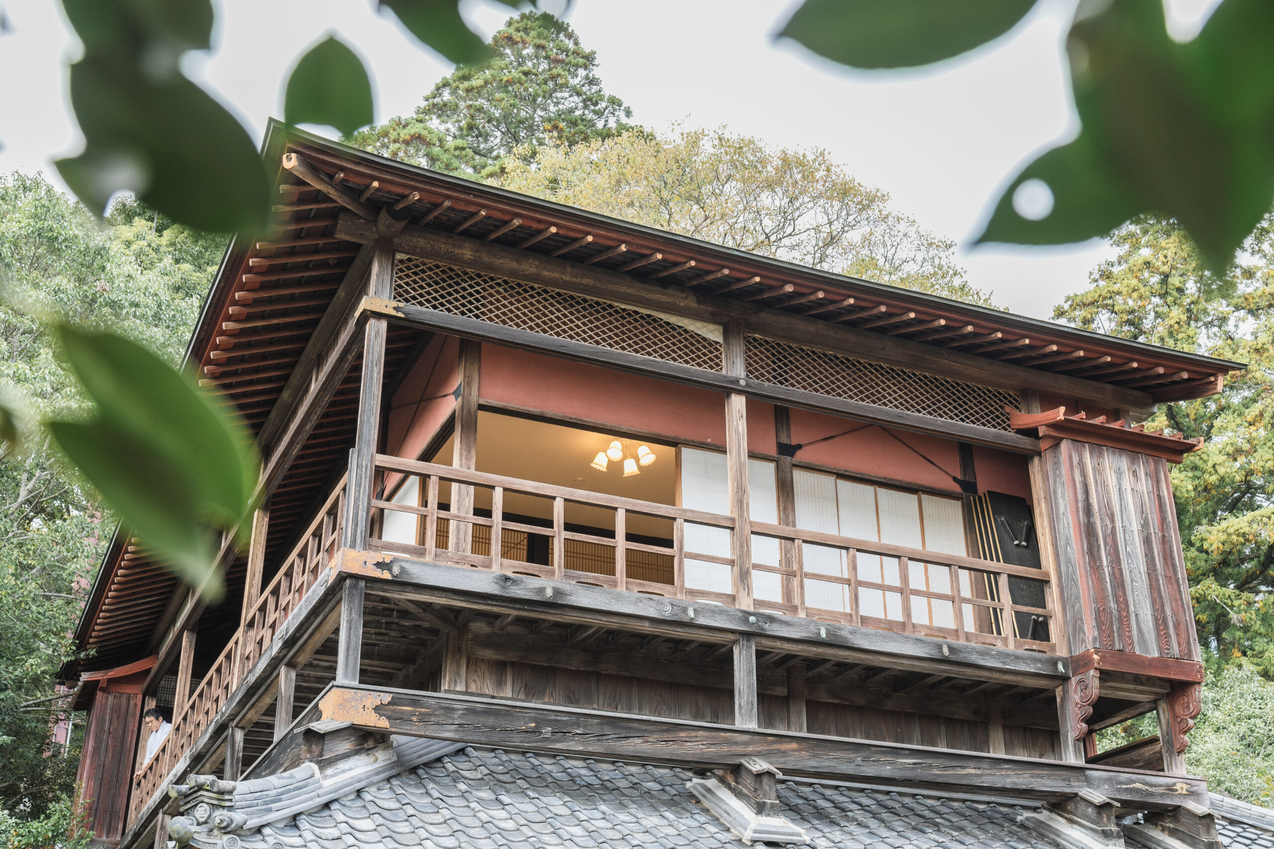 天保3年(1832年)に森藩主・久留島通嘉によって建てられ 藩主と家臣の集まりの場として利用されました春は桜 秋は月見や紅葉を楽しむ場所として親しまれ「 紅葉の御茶屋 」とも呼ばれましたこの歴史的な建物は日本遺産の一部で 2階建ての高低差を活かした設計が特徴です 東西に並ぶ12畳半の部屋からは 森城下町の美しい景観を一望できます藩主に思いをはせる庭園を臨む