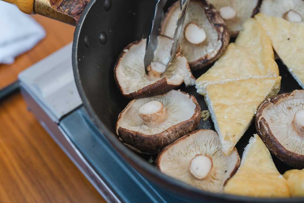 大分県はしいたけの産地として知られ、その中でも玖珠町は山が多く、しいたけの成長に適した環境。ズラリと並んだしいたけの原木を目の当たりにすると圧巻。肉厚のぷりぷりしいたけは絶賛です。